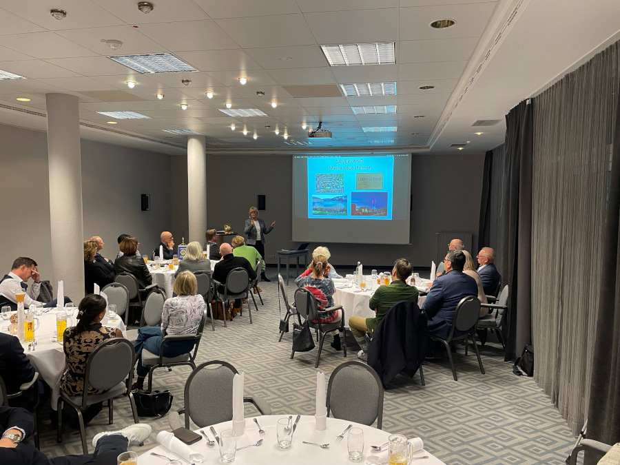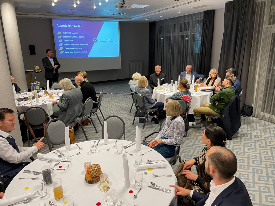 Der Clubabend am 04. November 2025 war geprägt von den notwendigen internen Abstimmungen zu den Activities der nächsten Wochen und Monate. Dazu zählen der Kinoabend am 28.11.2025 im Scala Kulturpalast in Werder, der Adventskalenderverkauf und natürlich der jährliche Glühweinstand auf dem Potsdamer Sternenmarkt. Aber es gab auch einen sehr interessanten Vortrag unserer Lionsfreundin Dr. Christine Booms. Sie stellte uns ihr "Lebensbild" vor und ging dabei besonders auf die herausfordernde Zeit von 1989 bis zu ihrem Ruhestand ein. Der Weg führte sie von Ost über Südwest nach Nord und wieder zurück nach Ost. (RC)