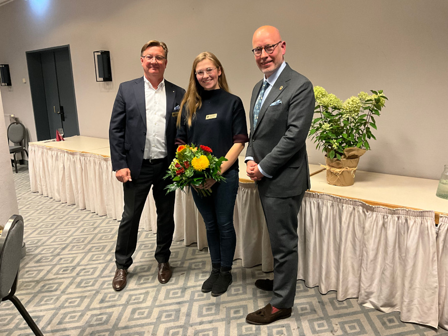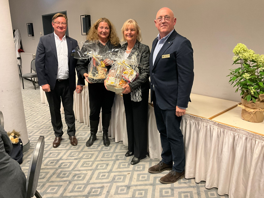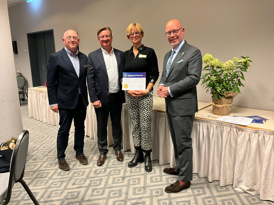 Nach einem gemeinsamen Abendessen ging der Clubabend in den internen Teil über. Als erstes gab es zwei Neuaufnahmen von Mitgliedern. Michael Dimde begrüßte Dr. Barbara Lindemann und Lysanne Wimmer, die nun beide unseren Club mit ihrer Mitarbeit und ihrem Engagement bereichern werden. Danach gab es Glückwünsche und kleine Geschenke zu runden Geburtstagen sowie eine besondere Ehrung für unseren langjährigen Leo-Beauftragten, Prof. Dr. Roland Körber. Die Distrikt-Präsidentin der Leo’s, Marla Busse, überreichte ihm den „Leo Award of Honor“ als Dank und Anerkennung für seine Leistungen.