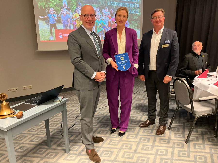 Beim Clubabend Oktober hatten wir außergewöhnlichen Besuch. Sophie Prinzessin von Preußen stellte die Geschichte, die Ziele und das heutige Wirken der Prinzessin Kira von Preußen Stiftung vor, https://kira-stiftung.de/. Sie ging besonders auf das langjährige und erfolgreiche Engagement der Stiftung ein, benachteiligten Kindern und Jugendlichen glückliche und sorgenfreie Ferientage auf der Burg Hohenzollern oder in einem Zeltlager zu ermöglichen. Unser Präsident, Michael Dimde, dankte für den eindrucksvollen Vortrag und erklärte, dass sich für uns Lions hier vielfältige Anknüpfungspunkte ergeben.
